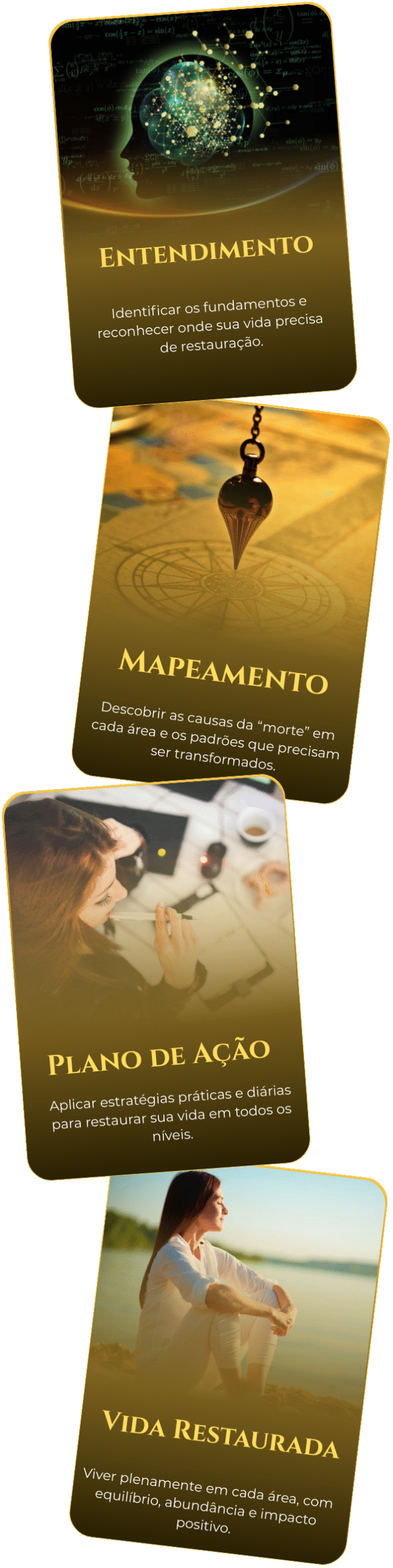 Desejam libertar-se de traumas, ansiedades, culpas e emoções desordenadas. Na jornada das emoções, você aprenderá a alinhar pensamentos e sentimentos, fortalecendo sua saúde emocional e sua capacidade de reagir às adversidades, conquistando equilíbrio, paz interior e novas respostas diante dos desafios da vida.